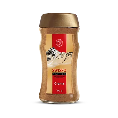 Swisso Crema — восхитительный кофе в виде нежного порошка, который после заваривания образует бархатистую кофейную пенку.